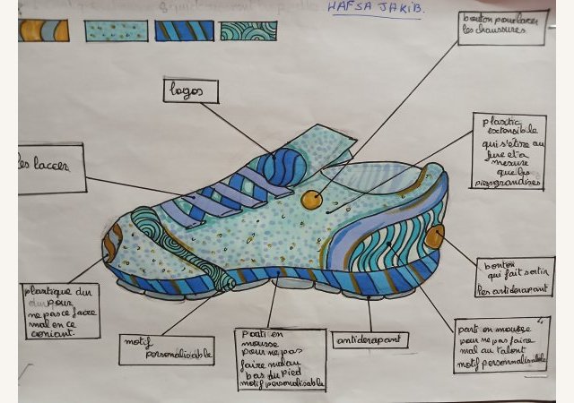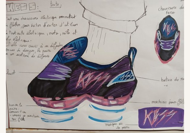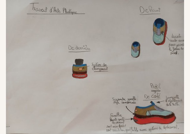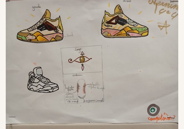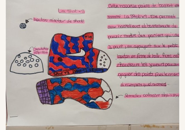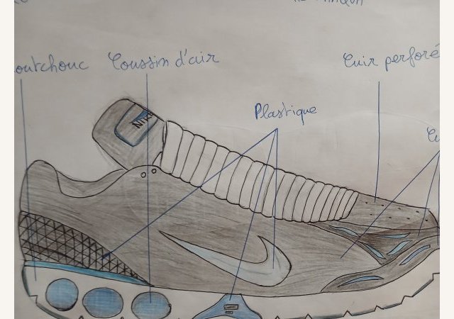 Sur les pas de Tinker...Après avoir vu le documentaire « Abstract Design » sur le créateur de chaussures Tinker Hatfield, les élèves de 4e devaient inventer et dessiner la chaussure du futur. Leurs dessins techniques sont (...) -