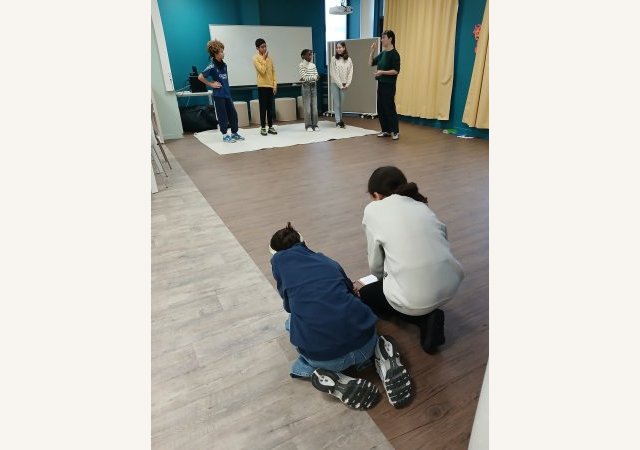 Projet Erasmus, séance du 10 février.Aujourd’hui le groupe a travaillé la mise en mouvement et la dynamique de groupe. L’écriture du scénario avance peu à peu et on commence à imaginer des saynètes sur le thème de la lutte contre les (...) -