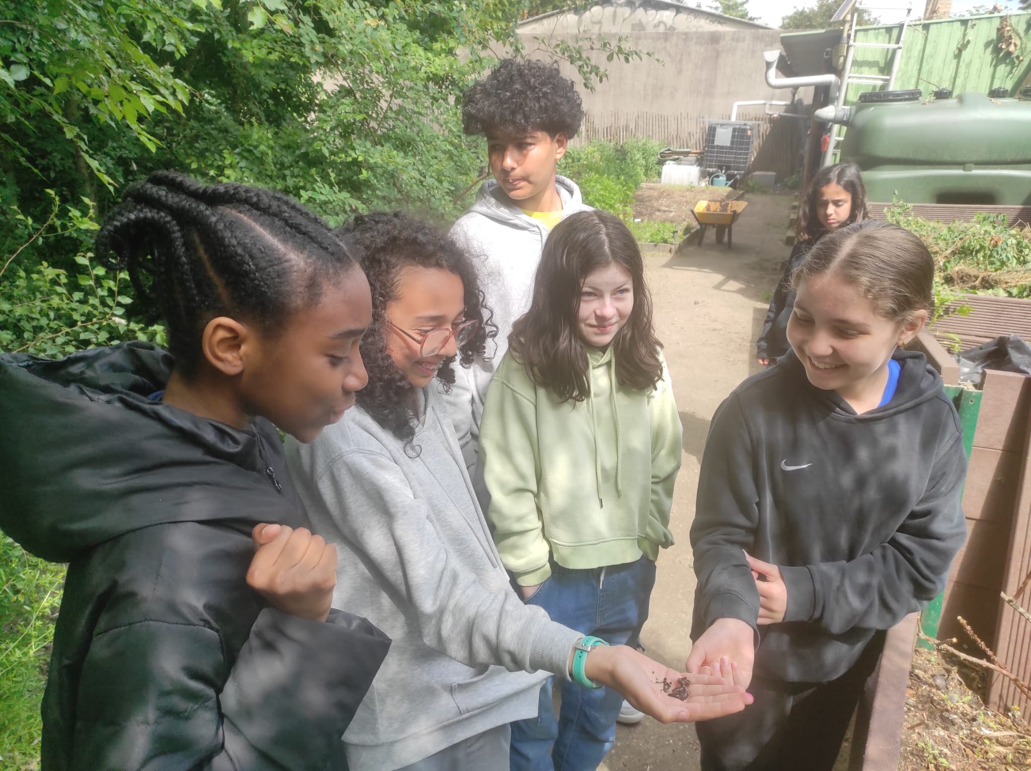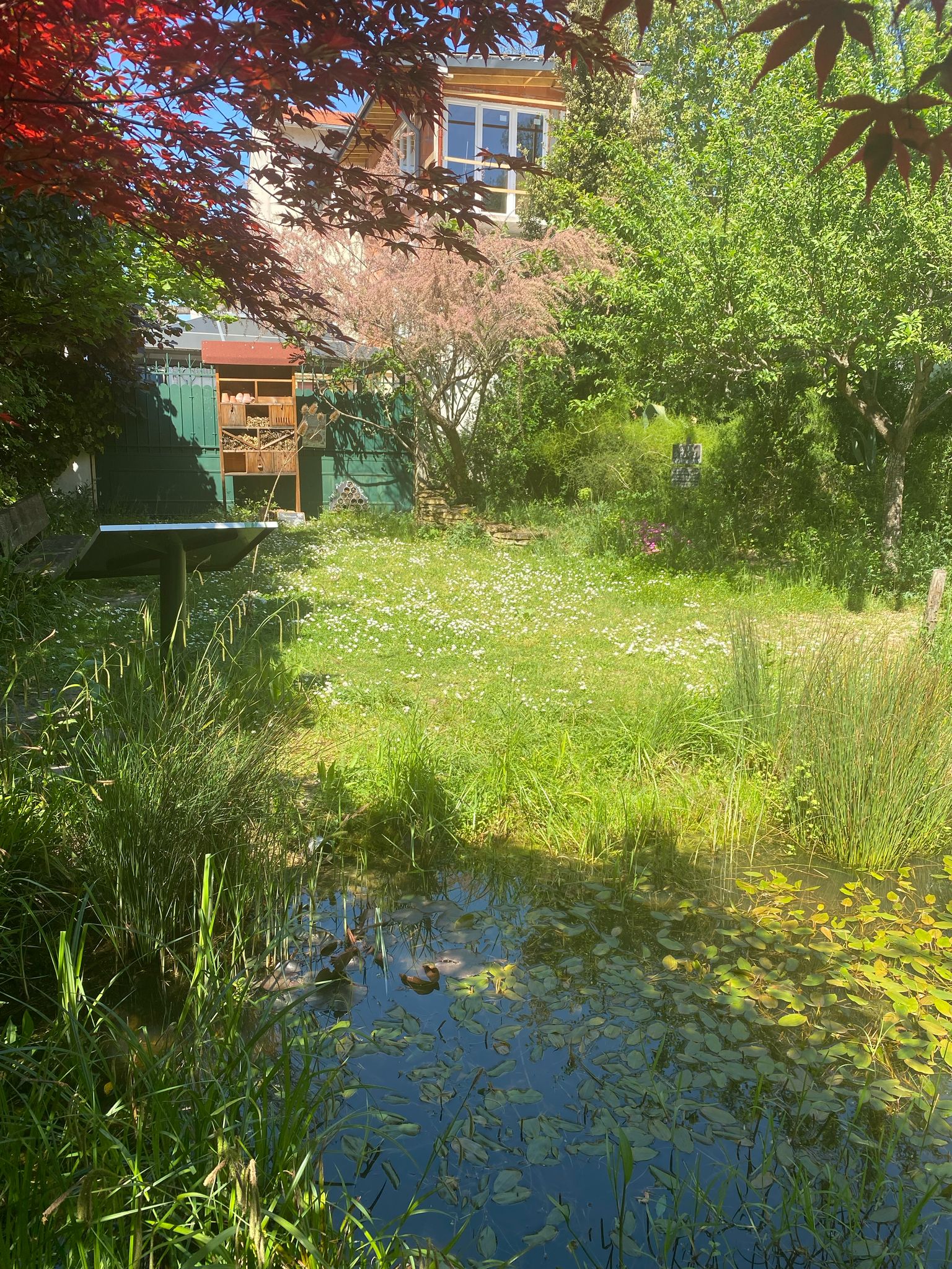 La séance s’est terminée par un tour de jardin ; des plantes odorantes (verveine citronnée, sauge, thym) à l’espace boisé pour les nichoirs et oiseaux pour finir au niveau du compost et des animaux qui y vivent.