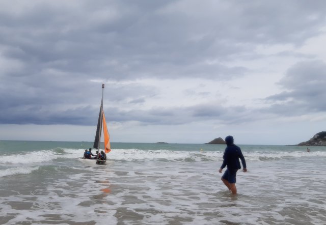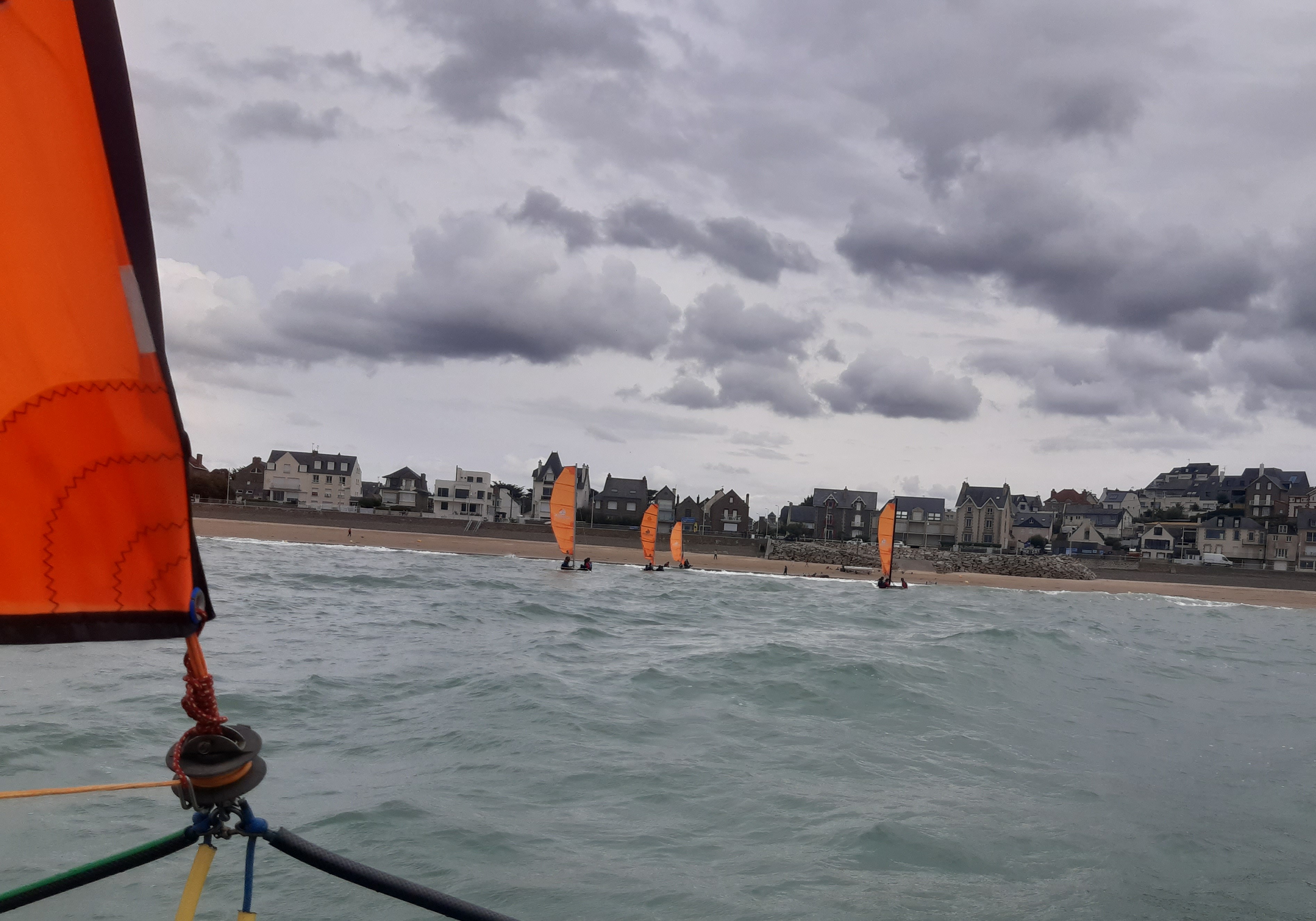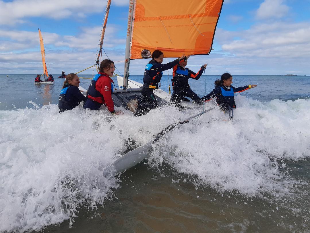 L’après –midi avait lieu la première séance de voile, avec un vent assez fort et de beaux rouleaux sur la plage. Emotions assurées !