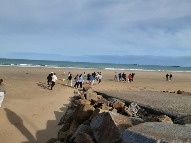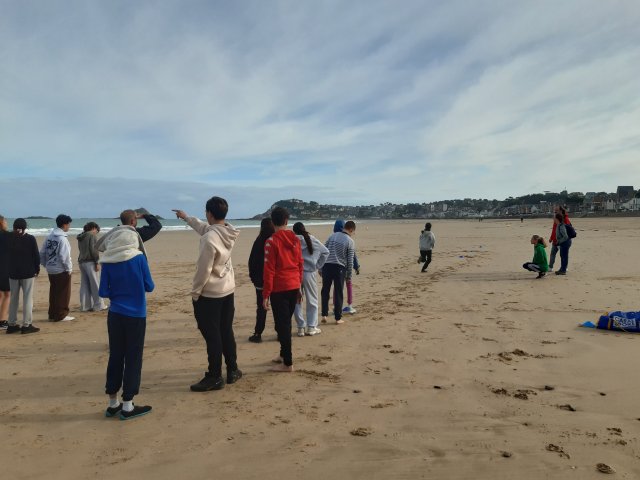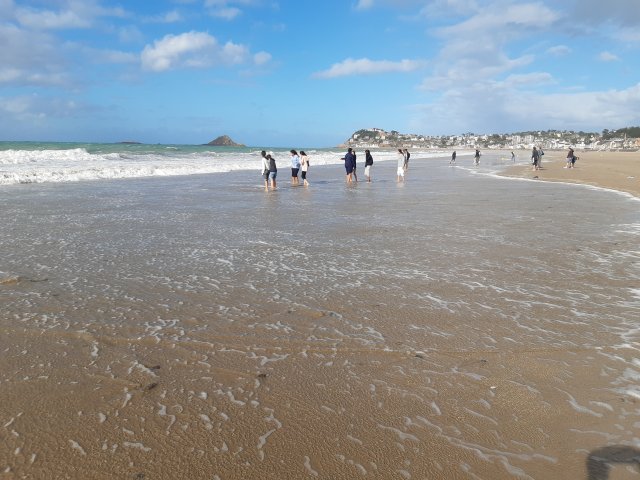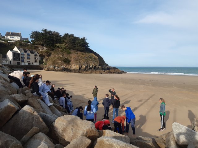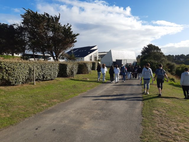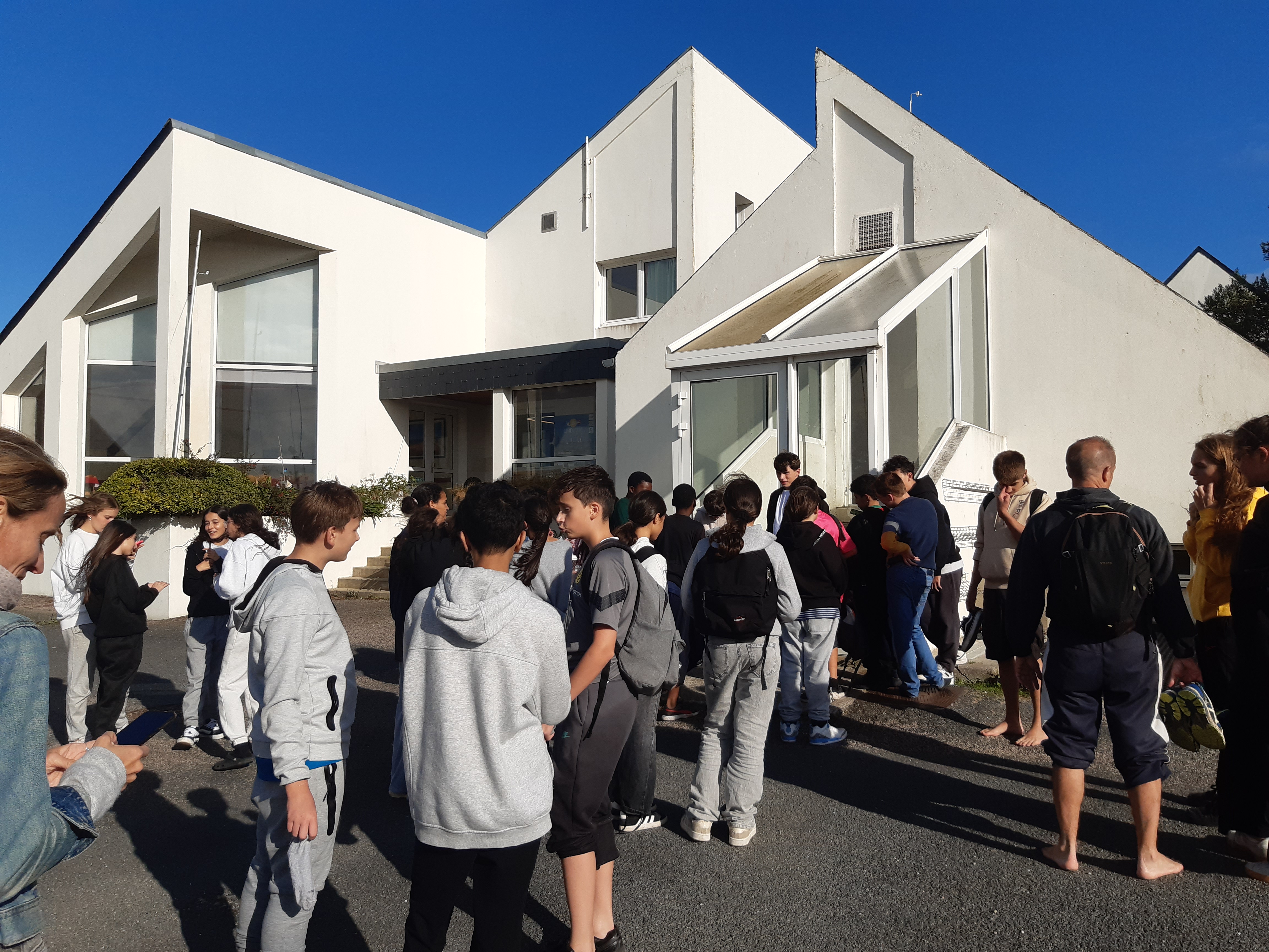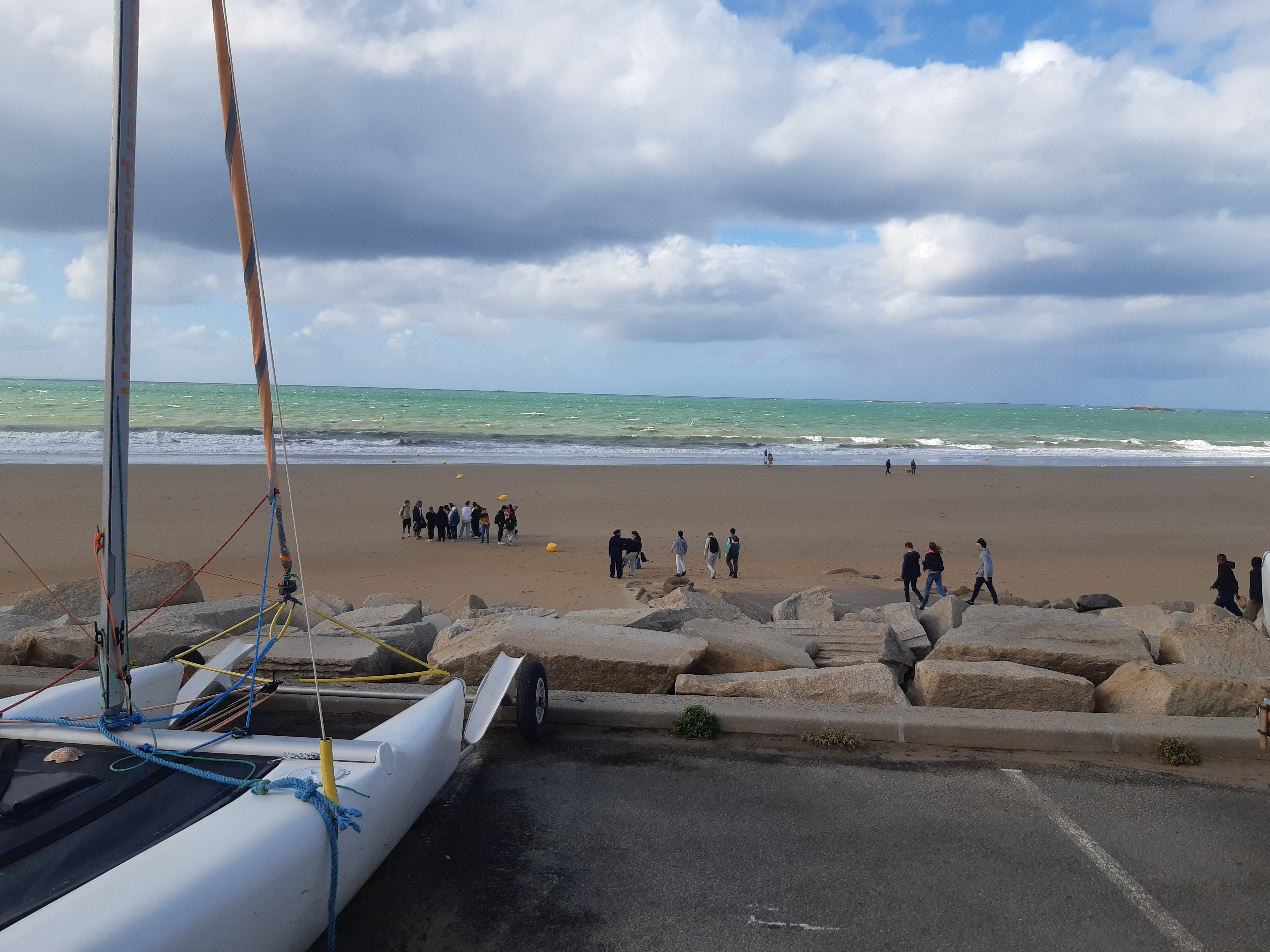 Après quelques heures de route, les élèves ont découvert le centre nautique qui les hébergeait, niché sur la petite falaise, à quelques minutes à pied de la plage du Val André où ils sont descendus le jour même.