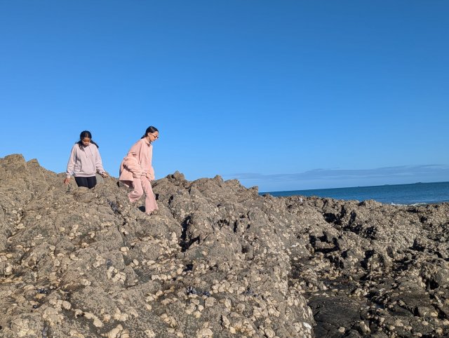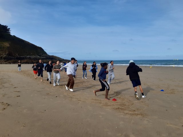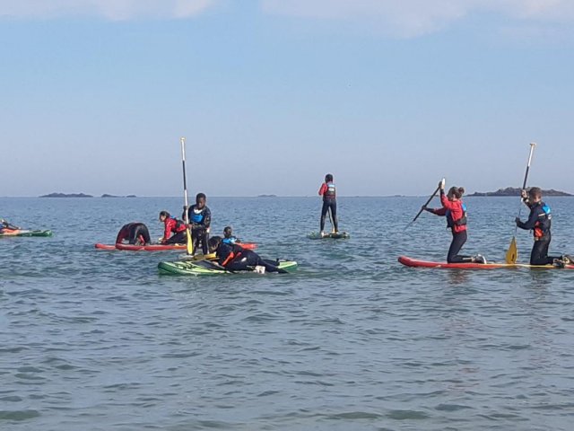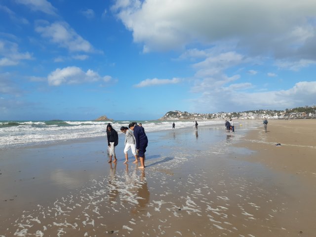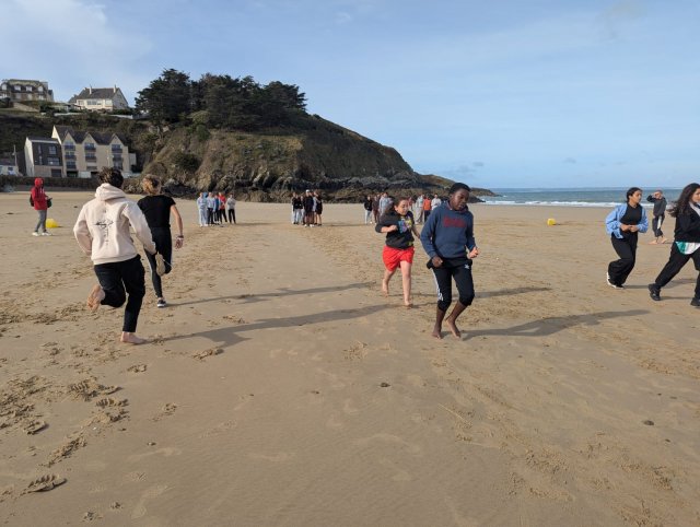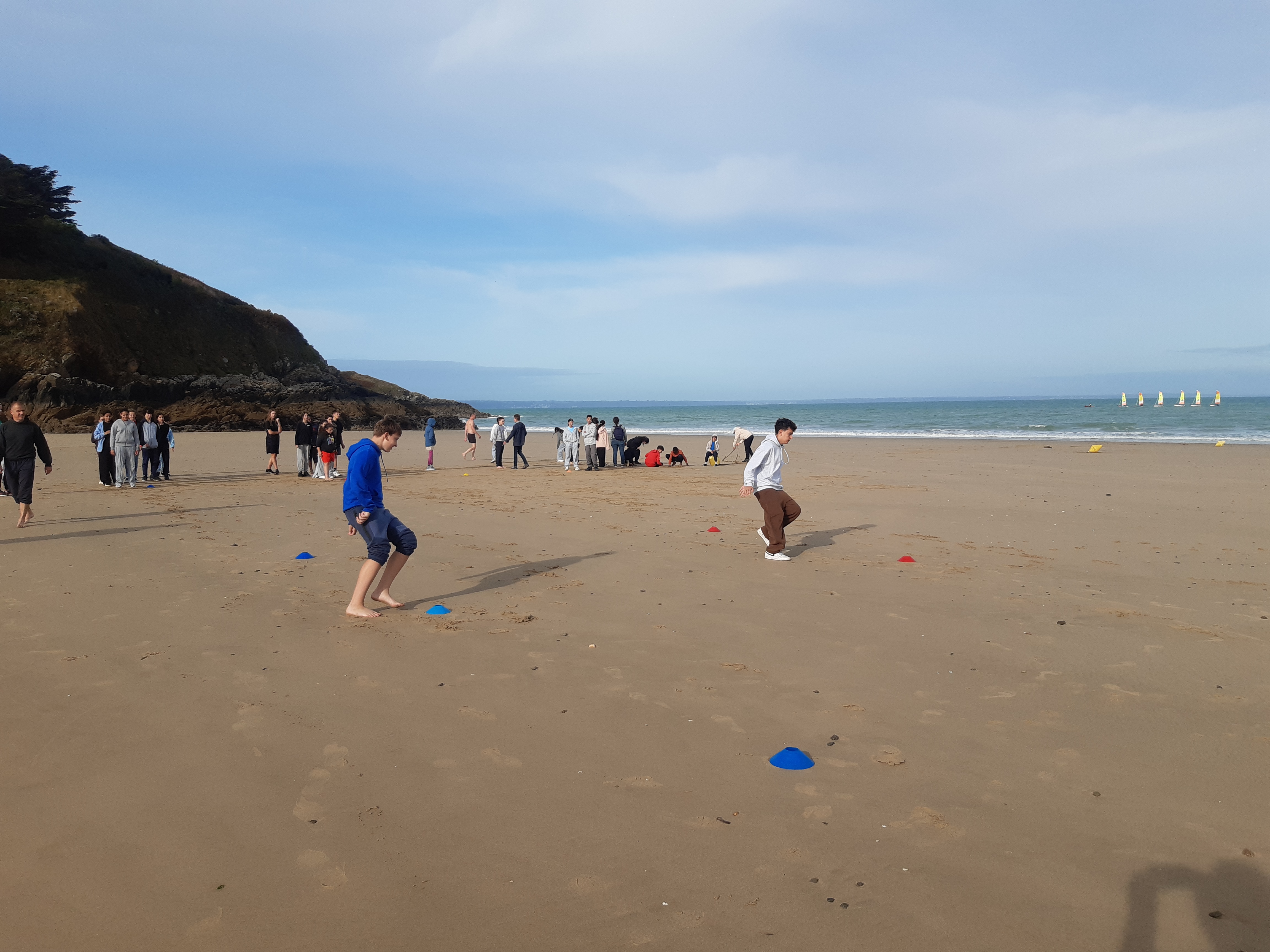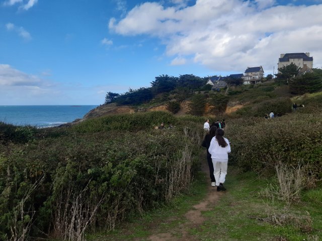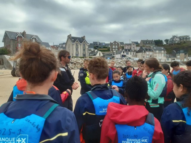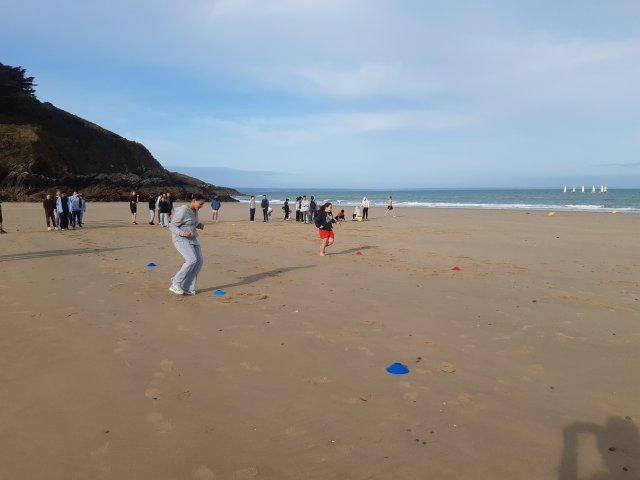 Après quelques heures de route, les élèves ont découvert le centre nautique qui les hébergeait, niché sur la petite falaise, à quelques minutes à pied de la plage du Val André où ils sont descendus le jour même.