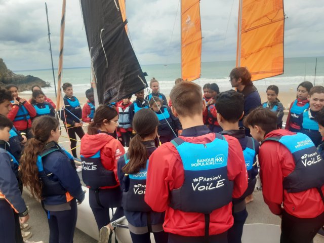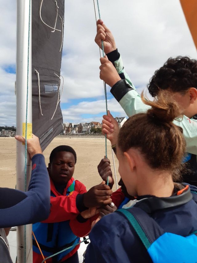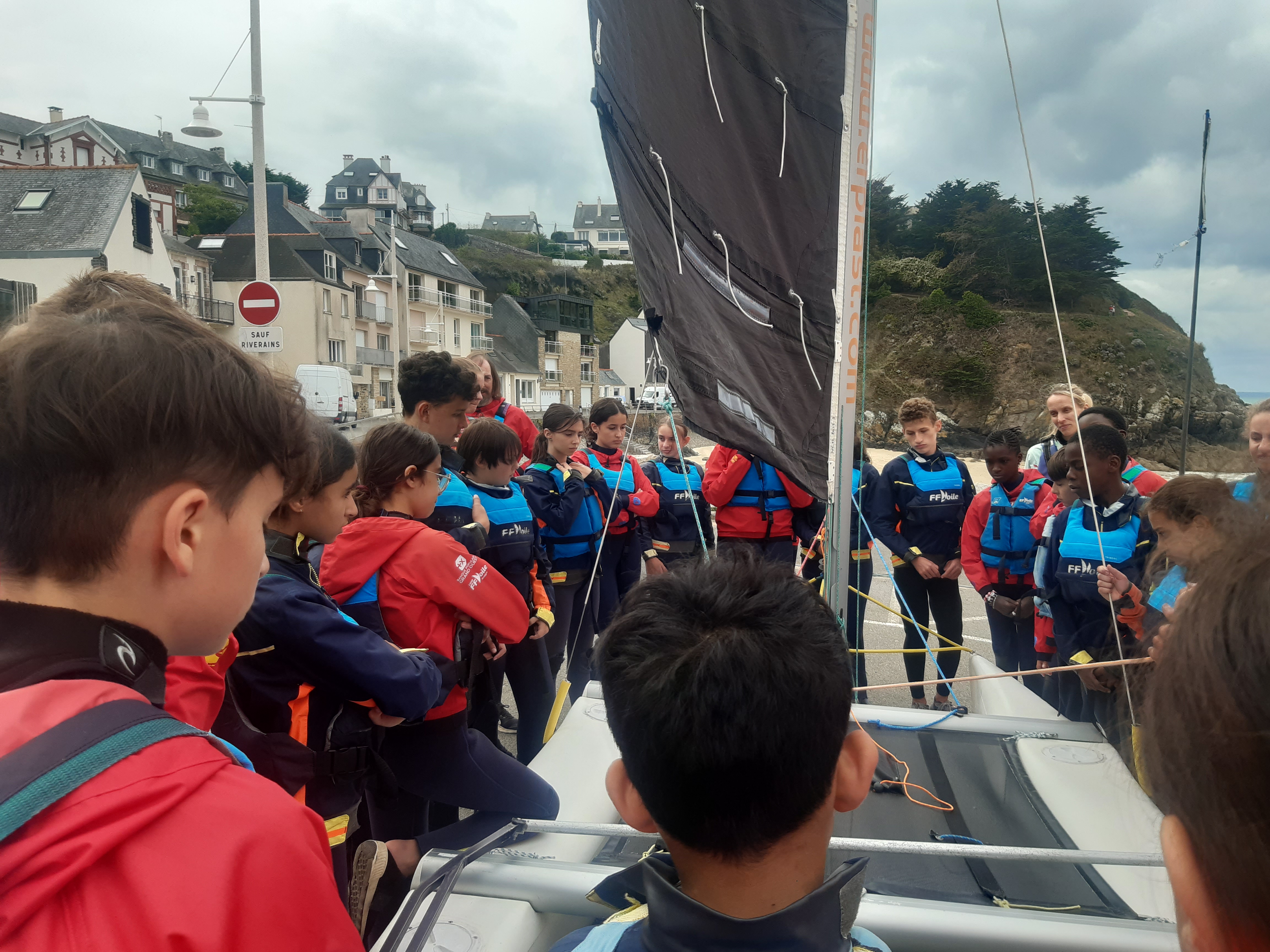 Du 15 au 19 septembre, 34 élèves de 5e, 4e et 3e ont participé à un séjour-voile à Pléneuf-Val-André, dans les Côtes d’Armor. Cette semaine sur la côte bretonne était la conclusion de deux projets de longue haleine : les « classes conte » de 6e4 et 5e4 et la réalisation d’un petit dériveur en bois par les élèves de l’atelier « Plage et plan », le chantier naval du collège.