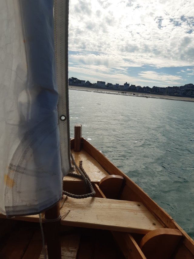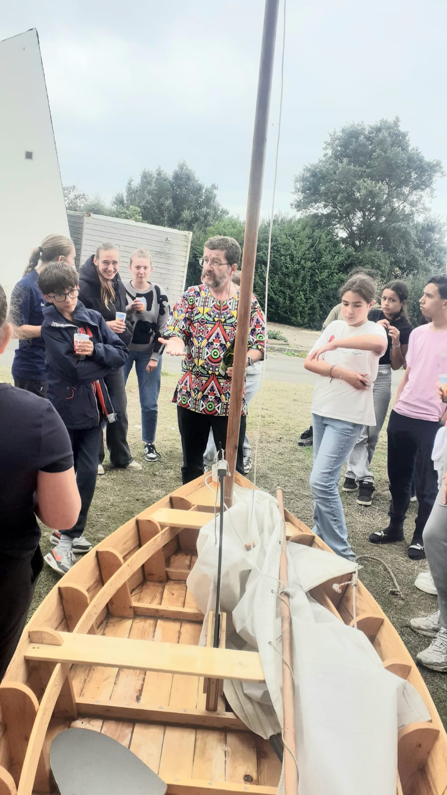 Le jour même, après le déjeuner, ils ont tous été invités au « baptême » du dériveur en bois construit durant 3 ans par les élèves de l’atelier. Les charpentiers n’étaient pas peu fiers !