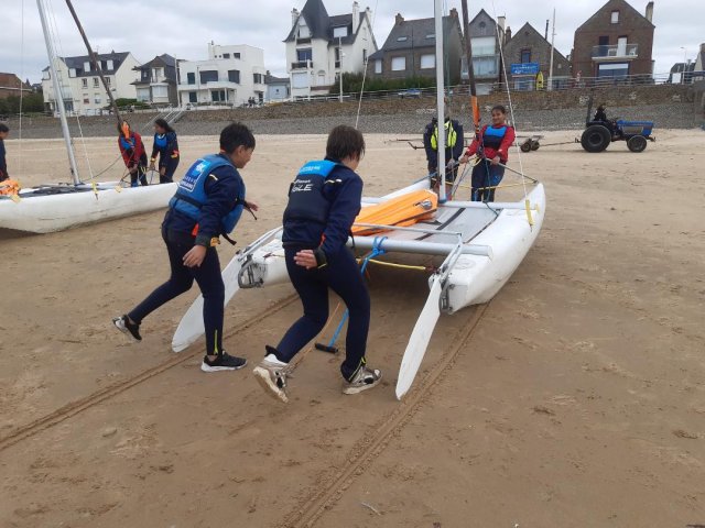 Mardi matin, avant une matinée sportive sur la plage, une combinaison leur a été attribuée pour qu’ils n’aient pas froid sur les voiliers.