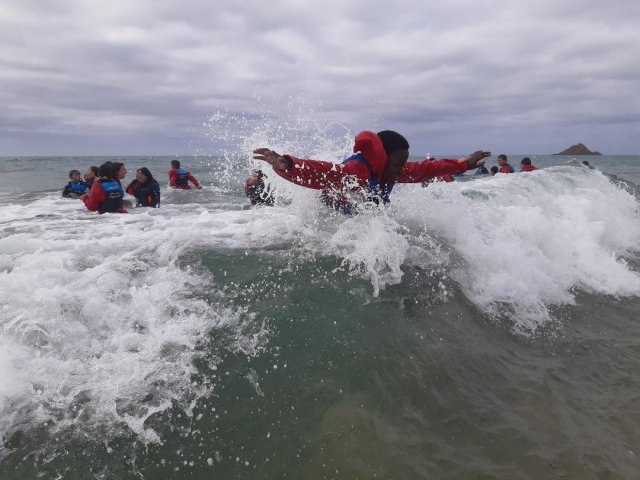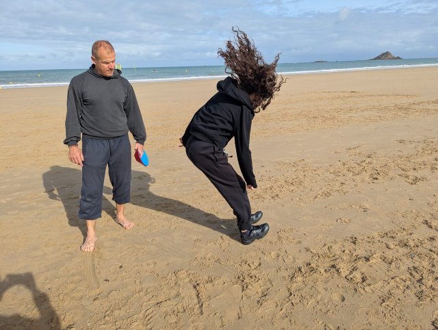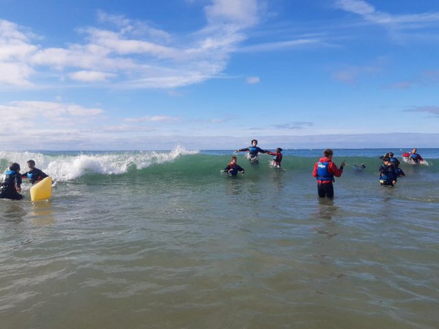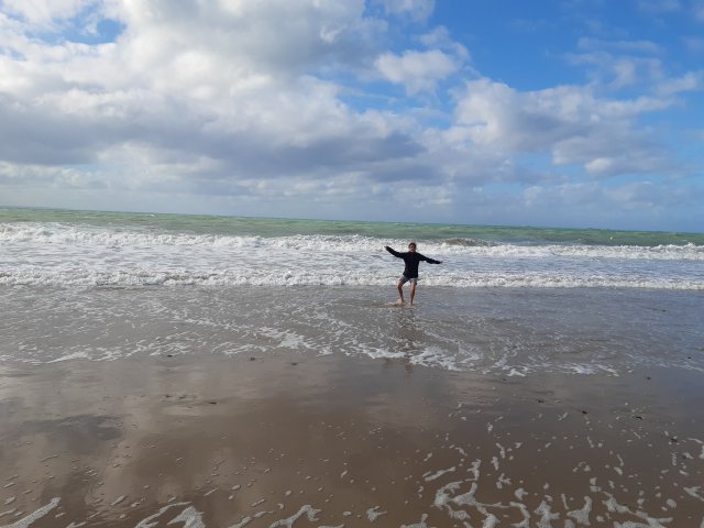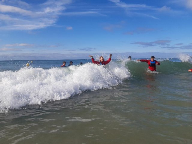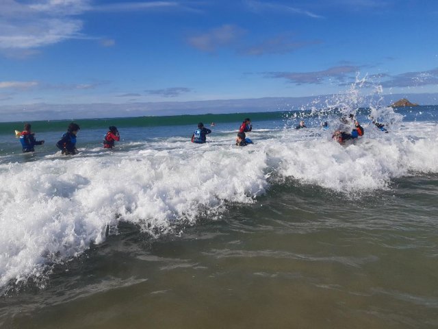 Ils ont perfectionné leur technique lors des deux séances suivantes, mercredi et jeudi après midi. Le temps était plus apaisé mais il y avait encore assez de vent pour s’amuser. Les vagues étaient toujours là et la baignade fut joyeuse à chaque fois !