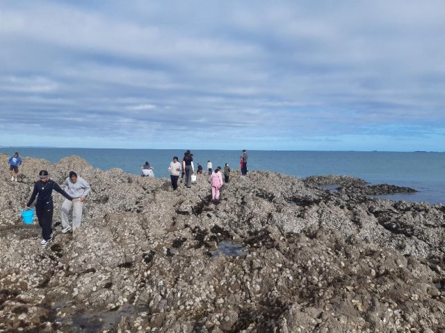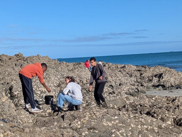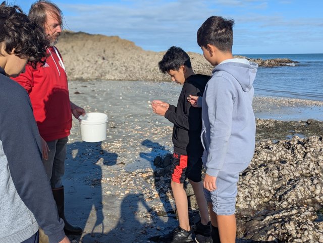 Mercredi matin, la pêche à pied a permis de découvrir la faune variée de l’estran : crabes, bigorneaux, étoiles de mer, huitres, œufs de raie, mouettes et crevettes et bien d’autres encore…