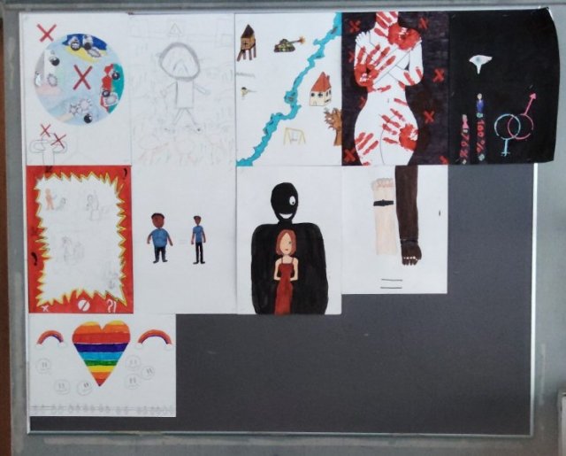 On retrouve maintenant leurs œuvres contre le racisme / le sexisme / la LGBT phobie (et bien d’autres) dans le couloir du deuxième étage.